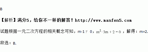 关于x的一元二次方程(m-1)x2+5x+m2-3m+2=0常数项为0,则m值等于( )