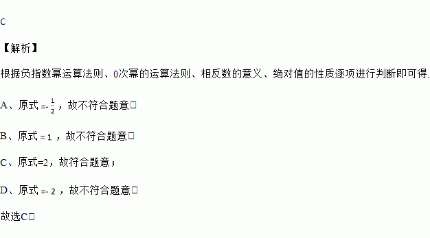 下列计算过程中,结果是2的是