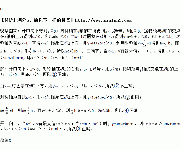 ⑤a+b+c>m(am+b)+c,(m>1的实数),其中正确的结论有( )