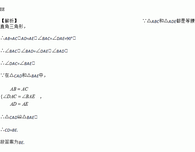 已知:如图, 和为两个共直角顶点的等腰直角三角形,连接、.图中一定与线段相等的线段是__________.
