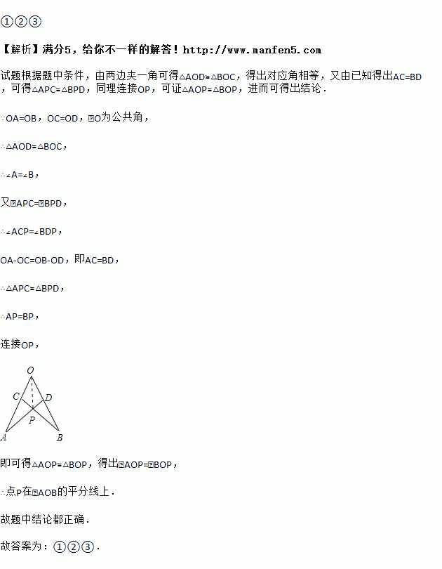 如图,在的两边截取,,连接AD,BC交于点P,则下列结论中≌,≌,点P在的平分线上正确的是______;填序号