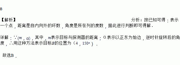 ,其中,m表示目标与探测器的距离;表示以正东为始边,逆时针旋转后的角度.如图,雷达探测器显示在点A,B,C处有目标出现,其中,目标A的位置表示为![]()