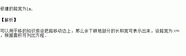 如图,在宽为20米、长为30米的矩形地面上修建两条同样宽的道路,余下部分作为耕地.若耕地面积需要551米2,则修建的路宽应为多少米?