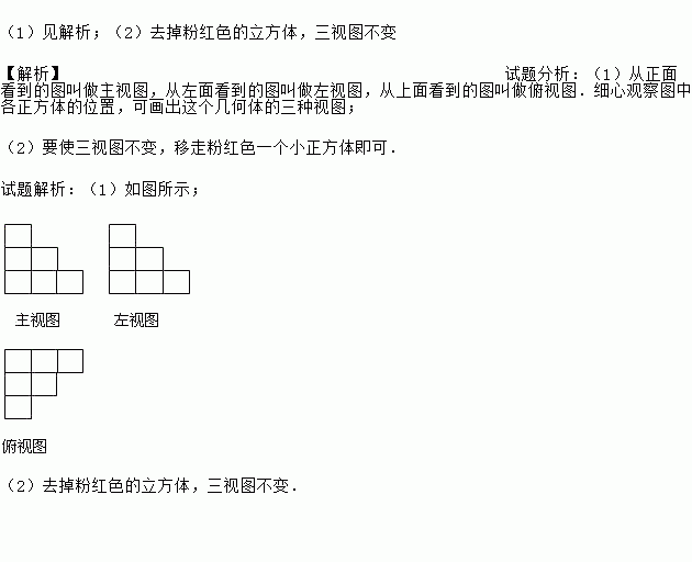 (2)能移走一个小正方体使它的三个视图都不变吗?