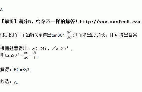 如图,为了测量学校操场上旗杆的高度,在距旗杆米的处用测倾器测得旗杆顶部的仰角为,则旗杆的高度为( )