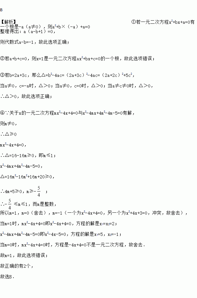 或1时,关于x的一元二次方程