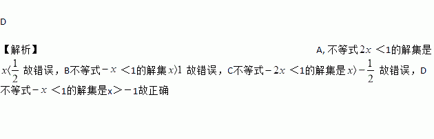 C. x>-1是不等式<1的解集 D. x>-1是不等式<1的解集