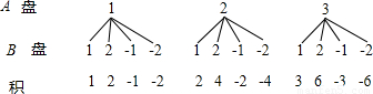 | B盘 A盘 | 1 | 2 | -1 | -2 |