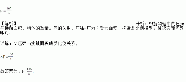 一个物体重 100N,物体对地面的压强 P(单位:Pa)随物体与地面的接触面积 S(单位:㎡)变化而变化的函数关系式是_______________.