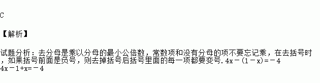 A、x-1-x=-1 B、4x-1-x=-4 C、4x-1+x=-4 D、4x-1+x=-1