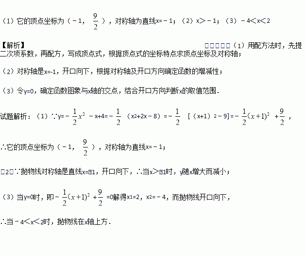 (1)用配方法确定它的顶点坐标、对称轴;