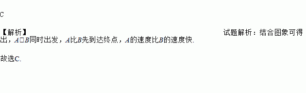 A .A比B先出发 B.A、B两人的速度相同 C.A先到达终点 D.B比A跑的路程多