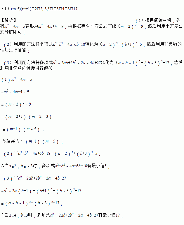 根据阅读材料用配方法解决下列问题: