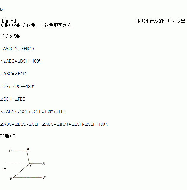 C. ∠BCE+∠DCE=∠ABC+∠BCD; D. ∠ABC+∠BCE -∠CEF=180.![]()