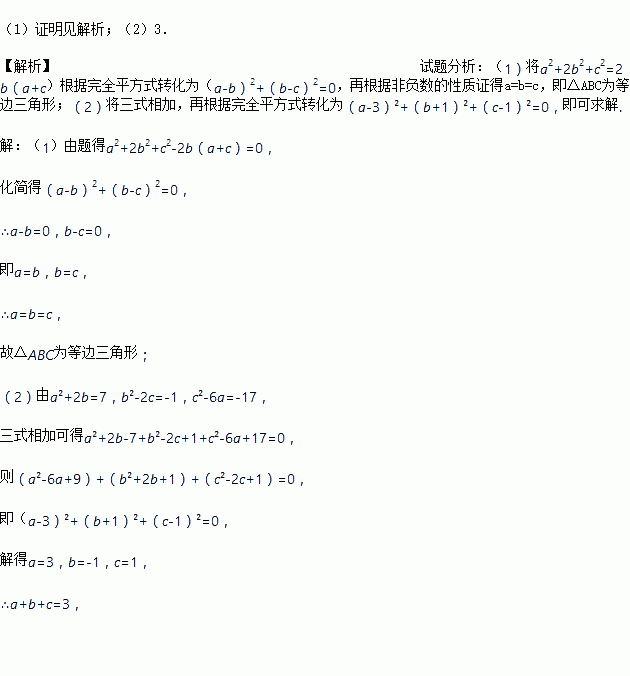 (1)已知:△ABC的三边分别为a、b、c,且满足a2+ 2b2+c2=2b(a+c).