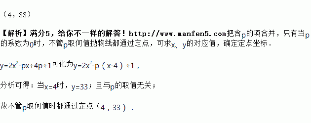 若抛物线y=2x2-px+4p+1中不管p取何值时都通过定点,则定点坐标为_________.