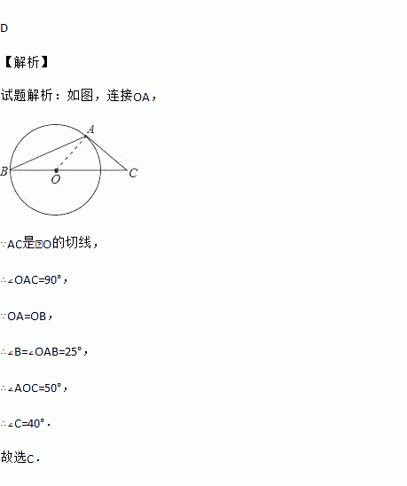 A. 20° B. 25° C. 40° D. 50°