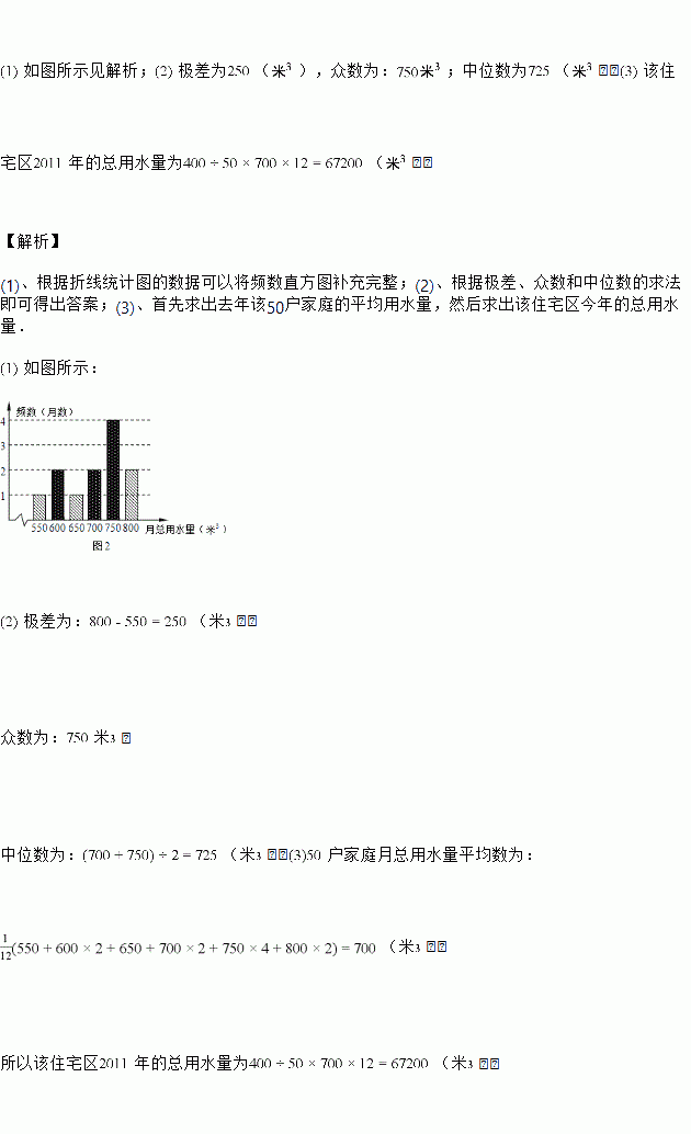 »§¼ÒÍ¥ÔÂ×ÜÓÃË®Á¿µÄ¼«²î¡¢ÖÚÊý¡¢ÖÐλÊý£»![]()