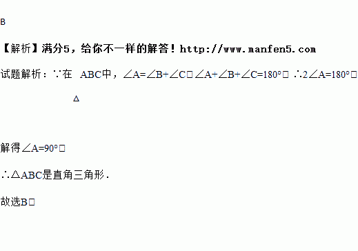 △ABC中,∠A=∠B+∠C,则对△ABC的形状判断正确的是( )