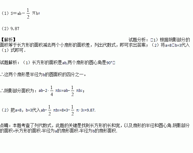 (2) 当a=8,b=3时,求阴影部分的面积(π取3.14).