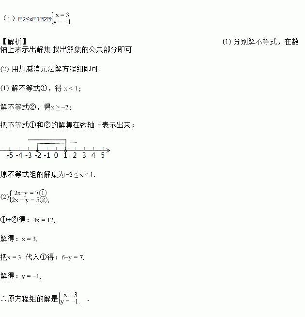 (1)解不等式组,并在数轴上把解集表示出来;
