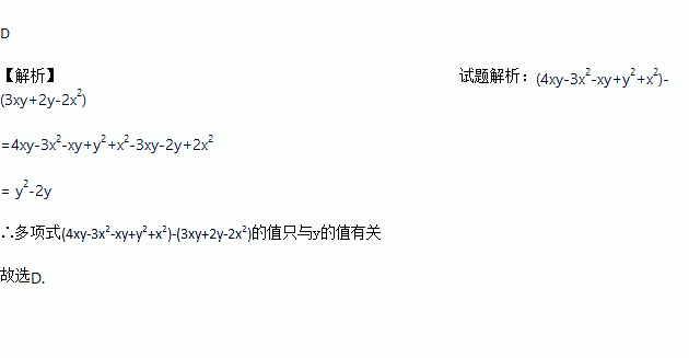 多项式(4xy-3x2-xy+y2+x2)-(3xy+2y-2x2)的值( )