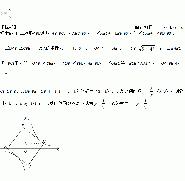 如图,正方形ABCD的边长为5,点A的坐标为(﹣4,0),点B在y轴上,若反比例函数y=
