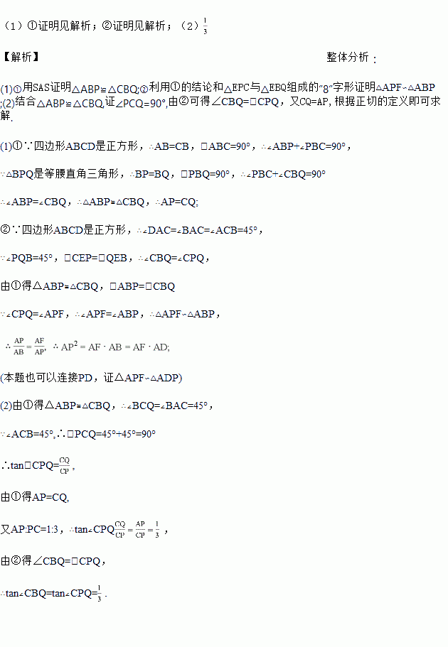 (2)若AP:PC=1:3,求tan∠CBQ.