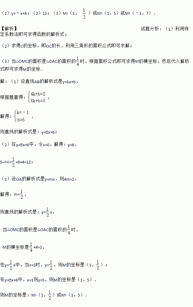 如图,在平面直角坐标系中,过点B(6,0)的直线AB与直线OA相交于点A(4,2),动点M在线段OA和射线AC上运动.