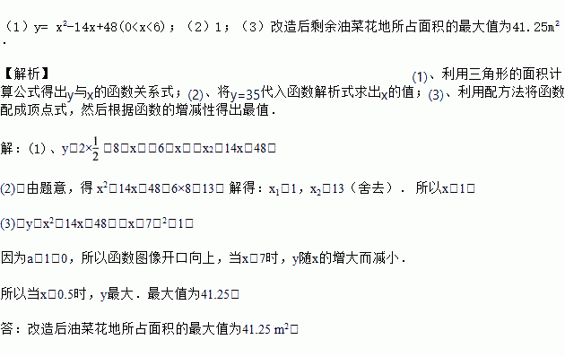 (3)若要求 0.5≤ x ≤1,求改造后剩余油菜花地所占面积的最大值.