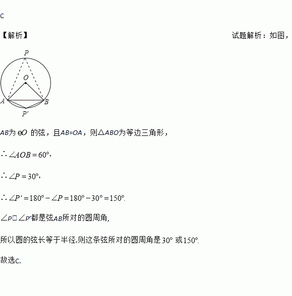 ⊙O的弦AB等于半径,那么弦AB所对的圆周角一定是( )