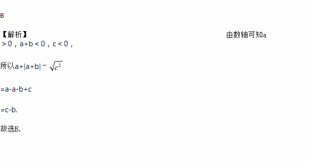 B 【解析】由数轴可知a>0,a+b<0,c<0, 所以a+|a+b|﹣ =a-a-b+c =c-b. 故选B.