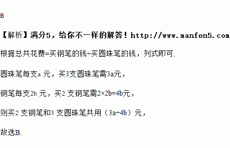 圆珠笔每支元,钢笔每支元,则买支钢笔和支圆珠笔共用( )