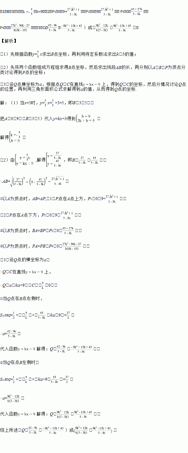 一次函数y=kx+b的图象经过点A(0,9),并且与直线y=