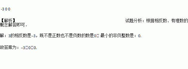 3的相反数是___,既不是正数也不是负数的数是___; 最小的非负整数是:________.