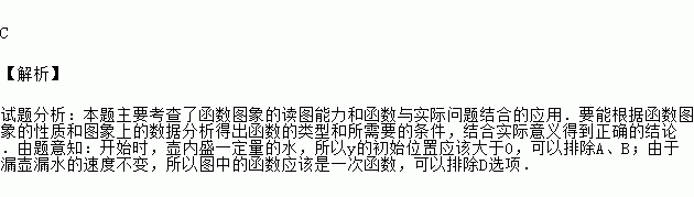 如图是我国古代计时器“漏壶”的示意图,在壶内盛一定量的水,水从壶底的小孔漏出.壶壁内画有刻度,人们根据壶中水面的位置计时,用x表示时间,y表示壶底到水面的高度,则y与x的函数关系式的图象是( )