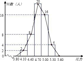 ·ÖÎö£º£¨1£©¸ù¾ÝÑù±¾ÈÝÁ¿=ƵÊý¡ÂƵÂÊ£¬¿ÉµÃ³éÈ¡µÄÒ»²¿·ÖѧÉúΪ2¡Â0.04=50ÈË£¬ÔÙÓÃ50·Ö±ð¼õÈ¥¸÷×éµÄƵÊý=ÊÓÁ¦ÔÚ4.55¡«4.85ÄÚµÄѧÉúµÄÈËÊý£¬×îºóÇó³ö¸öƵÂÊ£»