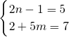 单项式2a2n-1b2+5m与b7a5的和是单项式,则nm=________.