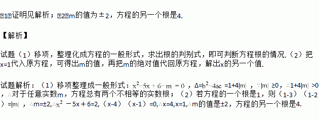 已知关于x的一元二次方程(x-3)(x-2)=|m|.