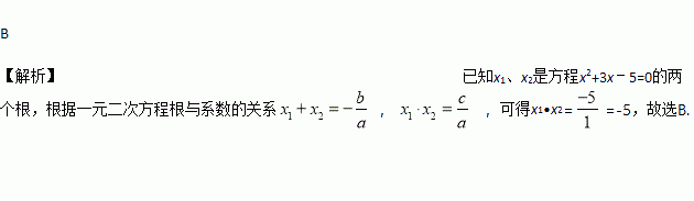 若x1、x2是方程x2+3x﹣5=0的两个根,则x1•x2的值为( )