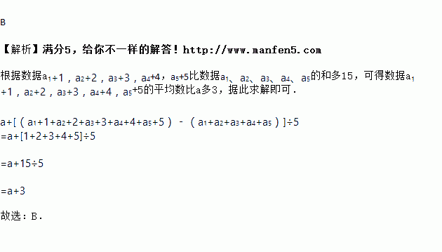 已知5个数a1、a2、a3、a4、a5的平均数是a,则数据a1+1,a2+2,a3+3,a4+4,a5+5的平均数为( )