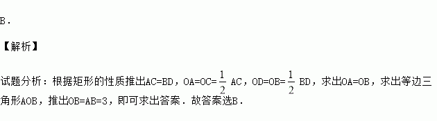 如图,矩形ABCD中,AB=3,两条对角线AC、BD所夹的钝角为120°,则对角线BD的长为