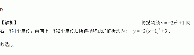 将抛物线向右平移1个单位,再向上平移2个单位后所得到的抛物线为( )