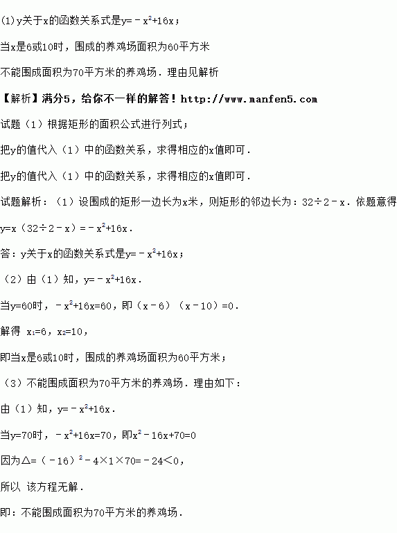 (3)能否围成面积为70平方米的养鸡场?如果能,请求出其边长;如果不能,请说明理由.