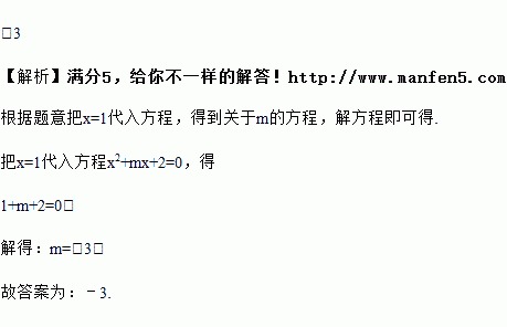 若关于x的方程x2+mx+2=0的一个根是1,则m的值为_____.