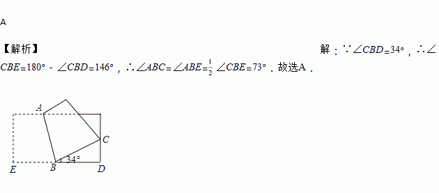 将一张长方形纸片折叠成如图所示的形状,则∠ABC=( )