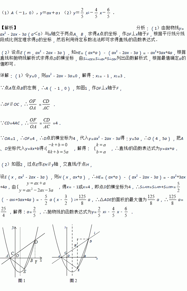 (2)点E为直线l下方抛物线上一点,当△ADE的面积的最大值为