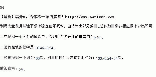 在抛掷一个图钉的试验中,着地时钉尖触地的概率约为.如果抛掷一个图钉次,则着地时钉尖没有触地约为________次.