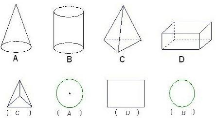 指出下列立体图形的对应的俯视图,在括号里填上对应的字母.