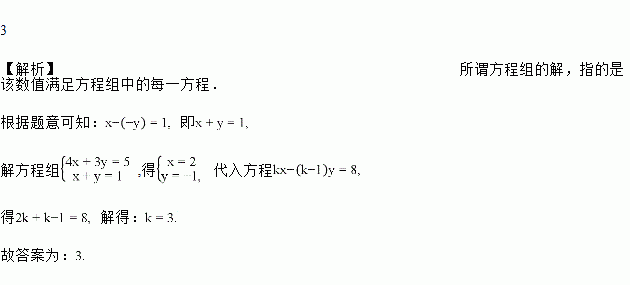 若方程组的解中x的值比y的值的相反数大1,则k为________.